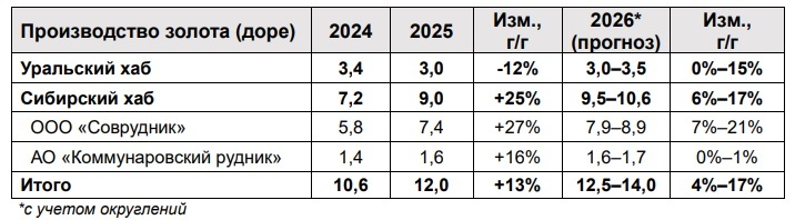 «В 2025 г. Компании удалось добиться роста производства на 13% по сравнению к 2024 г. Общий объем произведенного золота немного превысил 12 тонн, что говорит о выполнении утвержденной производственной программы на 2025 г.